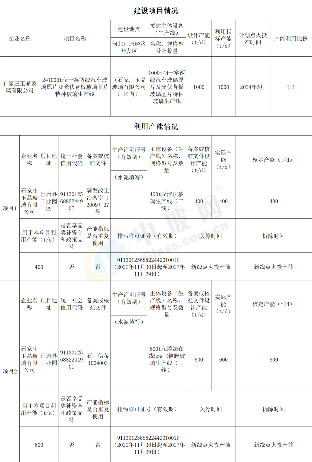银河娱乐城金沙石家庄玉晶玻璃有限公司2#1000t/d一窑两线汽车玻璃原片及光伏背板玻璃基片特种玻璃分娩线产能期骗决策